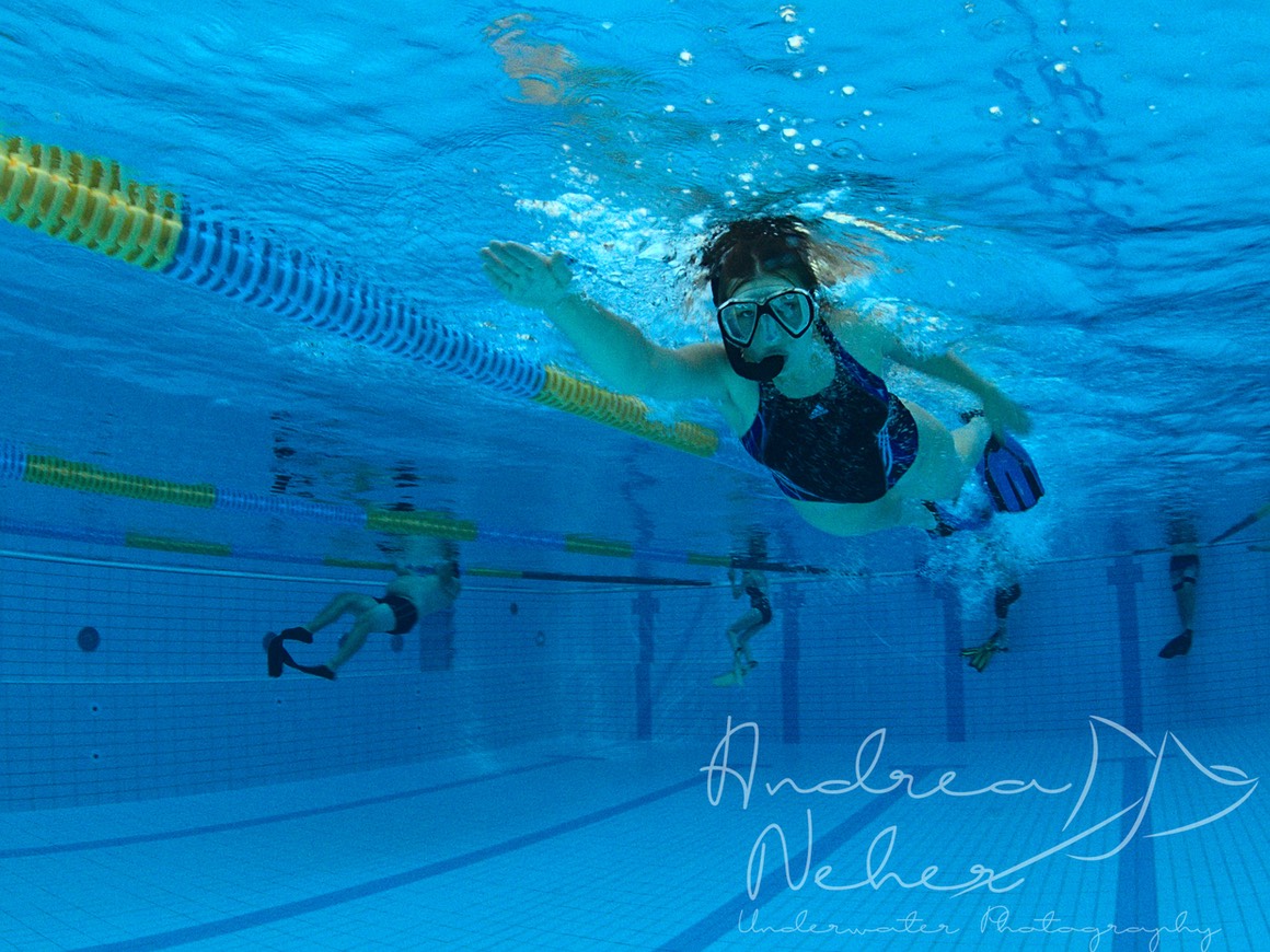 Drei mal im Monat trainieren wir auf der Bahn, d.h. Schnorcheln, Apnötauchen, Kondition, Ausdauer und viel Spaß haben.